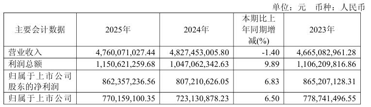 天津創(chuàng)業(yè)環(huán)保集團(tuán)股份有限公司(簡(jiǎn)稱:創(chuàng)業(yè)環(huán)保)近日正式發(fā)布《2025年年度報(bào)告》。報(bào)告期內(nèi),創(chuàng)業(yè)環(huán)保實(shí)現(xiàn)營(yíng)業(yè)收入47.6億元,同比下降1.40%;歸屬于上市公司股東的凈利潤(rùn)8.62億元,同比增長(zhǎng)6.83%;基本每股收益0.55元。根據(jù)公司利潤(rùn)分配政策,2025年擬向全體股東每10股派發(fā)現(xiàn)金股利人民幣2.09元(含稅),現(xiàn)金分紅數(shù)額占2025年度實(shí)現(xiàn)歸屬于母公司股東的凈利潤(rùn)38.06%。2025年度資本公積金不轉(zhuǎn)增股本。
