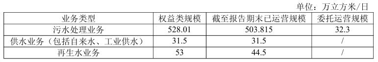 (5)污泥處置業(yè)務(wù)方面,截至報(bào)告期末,總規(guī)模為3630噸/日,主要分布在天津、甘肅、浙江、安徽。其中權(quán)益類污泥處置業(yè)務(wù)為臨夏污泥項(xiàng)目、津南污泥廠項(xiàng)目,規(guī)模為890噸/日,其余污泥處置項(xiàng)目為委托運(yùn)營(yíng)模式,規(guī)模為2740噸/日。