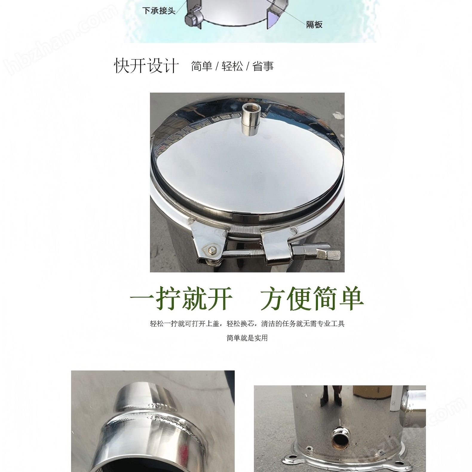 不銹鋼材質(zhì),耐用耐腐蝕:304/316L 不銹鋼筒體抗酸堿、抗腐蝕,適配高鹽、高腐蝕性水質(zhì),使用壽命長(zhǎng),衛(wèi)生級(jí)標(biāo)準(zhǔn)滿足食品、制藥等行業(yè)要求。